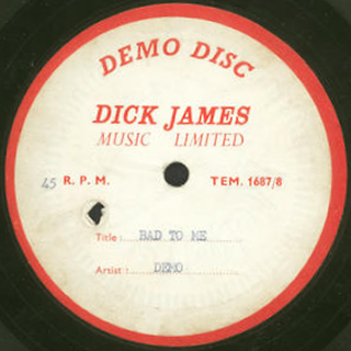 2017The Beatles: A rare demo acetate recording of 'Bad To Me', 1963,a single-sided 45rpm 7inch disc, with Dick James Music Limited label with typewritten recording details, framed Estimate: £4,000 - 5,000 2000 - Lot 219John Lennon And Paul McCartney 1981- Lot 168TWO BEATLES DEMO DISCS - EST - £60 - £100 - NO IMAGE AVAILABLE