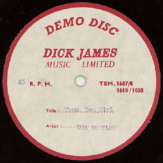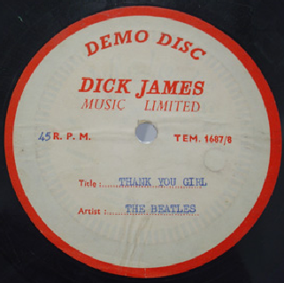 Retail Description - 2019An original Dick James Music Ltd. 7-inch acetate for The Beatles 1963 song Thank You Girl . This track was released as the B-side to their 1963 single From Me To You . On the white and red Dick James Demo Disc label with printed artist and title details. It comes in a plain white sleeve. The record plays very good condition but sticks at one point. The condition of the acetate is very good minus. Retail Description - 2017An original Dick James Music Ltd. 7-inch acetate of The Beatles 1963 song ‘Thank You Girl’. This track was released as the B-side to their 1963 single ‘From Me To You’. The white and red Dick James Demo Disc label is printed with the artist and title details. The same as the released version. It comes in a plain white sleeve. The record plays very good but sticks at one point. The condition is very good minus. |