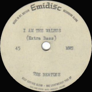 2005 AuctionA double-sided 7" acetate, 1967, either side with white Emidisc label with typescirpt artist and track details: BEATLES, I AM THE WALRUS and HELLO GOODBYE |