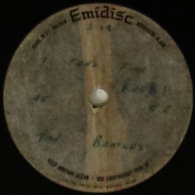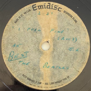 Auction Info 2017THE BEATLES - I FEEL FINE ACETATE - Stupendous opportunity to acquire a double sided Emidisc 7" recording of the classic 1964 release. The record plays I Feel Fine both sides with different durations; one side is 2.19 whilst the other is 2.21, the complete studio version is 2.25. The record is in Fair condition with fairly heavy markings to both sides with some scratches too - though I'm sure a future owner could still listen to the recording if they so choose. 'Made In Gt. Britain Emidisc Recording Blank' on the labels with '2.19 I Feel Fine Rin 1 G.E A5 The Beatles' hand written on one side and '2.21 I Feel Fine (Rin 3) G.E A5 Best The Beatles' on the other. |