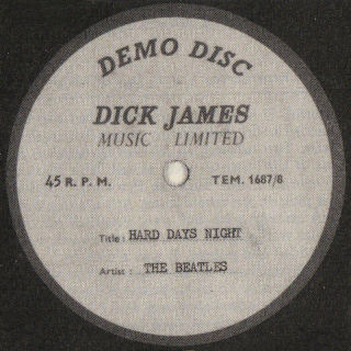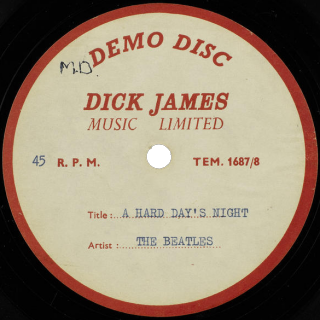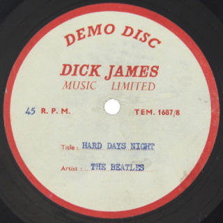 1964, a single-sided, 45rpm, 7inch disc, the Demo Disc Dick James Music Limited label with typewritten recording details and original owner's initials in ballpoint, mono, audibly as per released version |