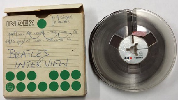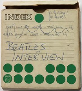 2018- Auction Info BEATLES RADIO INTERVIEW - previously unheard interview with The Beatles following their performance at the Granada Cinema in Shrewsbury on the 28th February 1963. The interview with The Beatles lasts just under 4 minutes and is conducted by a local radio DJ who attended the concert. On the tape reel are also interviews with Kenny Lynch, Danny Williams and Helen Shapiro who were headline acts on the same tour. |