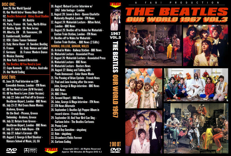 The Summer of Love - June thru September 1967! from Paul's "LSD" interview thru the 3rd season of the Beatles Cartoon series with SFF and Penny Lane! The Our world broadcast complete for the first time! With rehearsal clip!!! The Bangor Maharishi visit, Greece holiday and more - with new finds and upgrades on all!! EVERYTHING! 180 minutes in easy to find chapters!