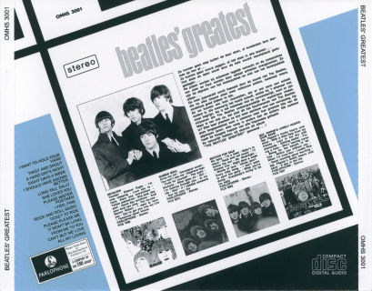 After several years selling a rip of the inferior original pressing of this a title the Doc released the post 1971 reissue of the Dutch compilation album The Beatles' Greatest which not only had a different master and mixes but sounded great. This pressing can easily be identified by STERMA appearing below The Beatles on the record label and this appears on the Doc's disc artwork. The easiest way to tell the two versions apart is by listening on this reissue I Feel Fine is in true stereo and has the Whispering intro and less reverb and All My Loving has no Hi-hat count-in . Collectors of alternate mixes may prefer to look out Helter Skelter's Beatles For Sale Studio Sessions Back to Basics rather than trying to locate this obscure title for a single track. |
