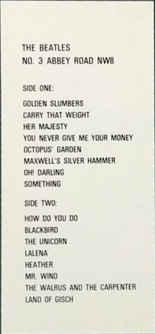 | 1 | Golden Slumbers / Carry That Weight | Take 13
