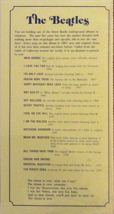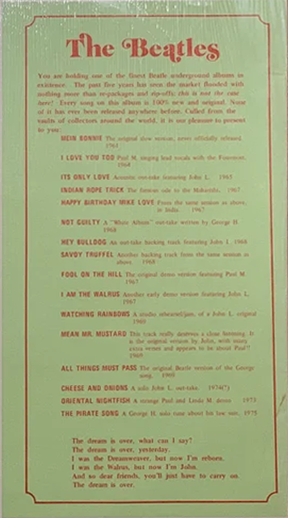 You are holding one of the finest Beatle underground album in existence. The past five years has seen the market flooded with |