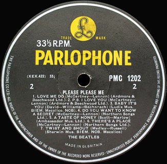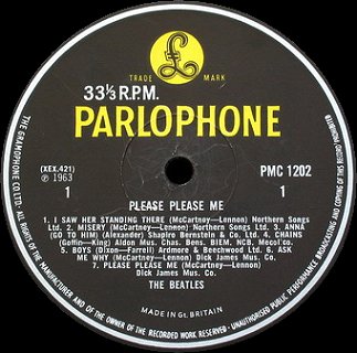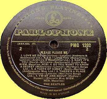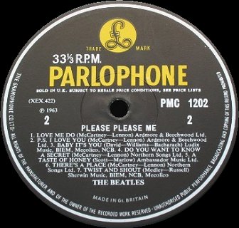 "The Parlophone Co.Ltd." 'Recording First Published 1963' NO 'Sold in UK' text No stamper impresion at 3 O'clock (G or D) 15mm in from label circumference circular impression |