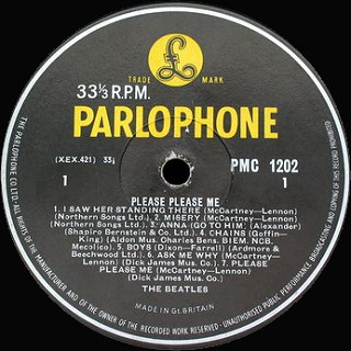 "The Parlophone Co.Ltd." I Saw Her Standing There,Misery, Do you Want To Know A Secret + There's A Place credited to Dick James Music Co. Laminated Ernest J Day Sleeve Poly' lined "Use Emitex" die Cut Inner Sleeve |
